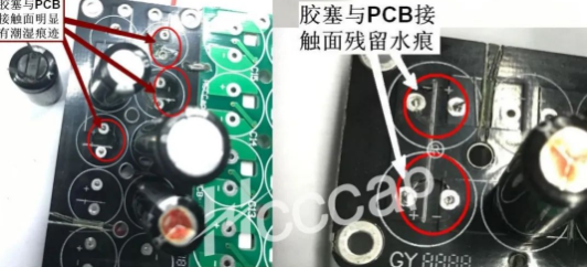 电容胶塞和PCB表面水汽凝结图1